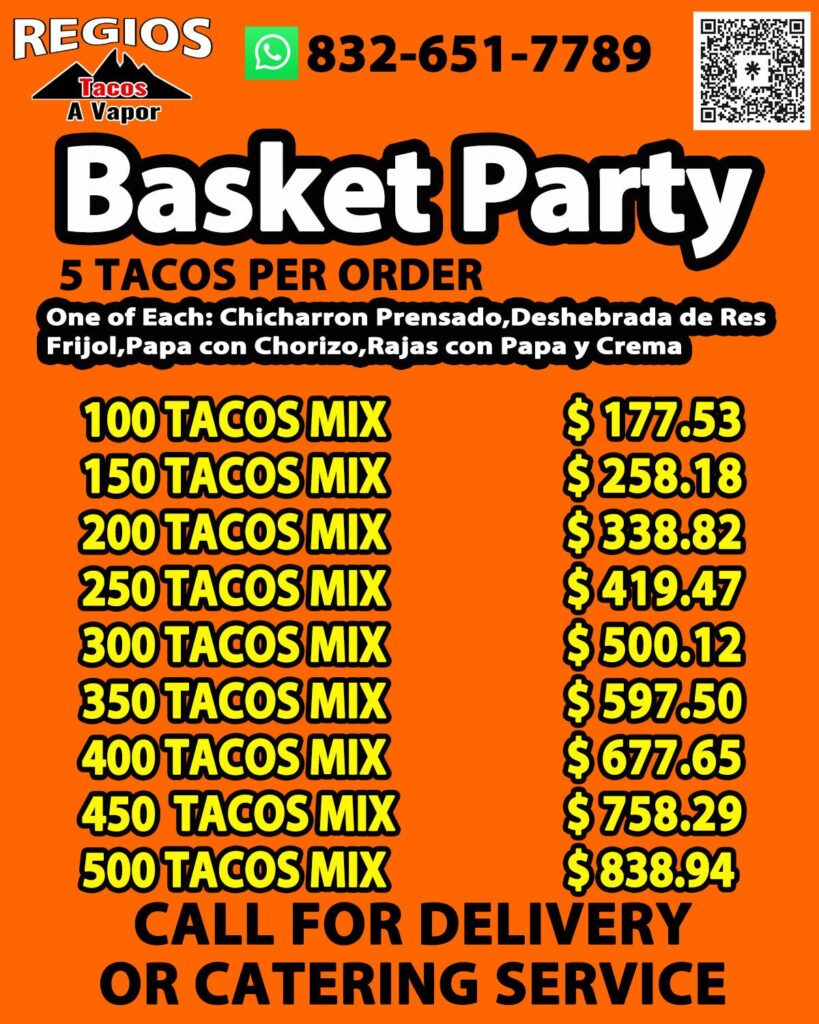 ¿Tienes un evento en Avery Ranch o una reunión en The Domain? Nuestro servicio de Basket Party es la opción perfecta para sorprender a tus invitados con el auténtico sabor regio. Llevamos nuestros deliciosos tacos a vapor listos para servir directamente a tu fiesta.